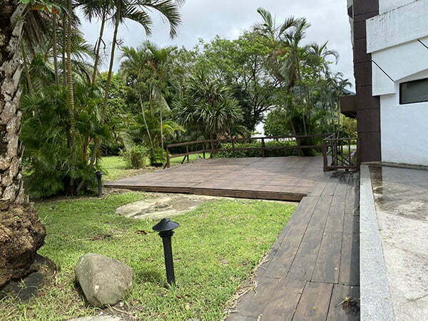 也可以和毛孩一起坐在渡假風的泳池旁發呆 (我們來的時候,因為颱風剛好接近,室外游泳池未開放)