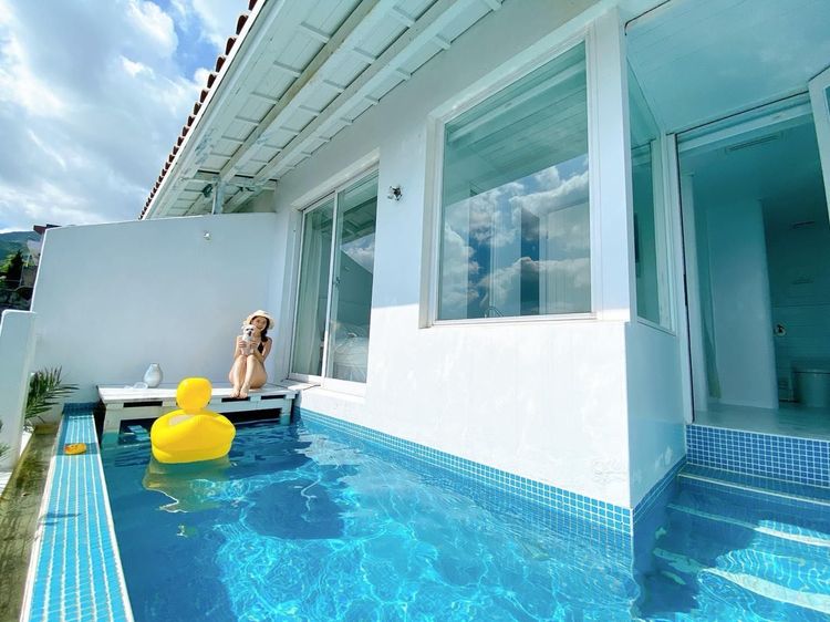 Ample villa讓人在房間待著就不想出來了!一進去就立馬換裝和毛孩寶寶一起游泳,