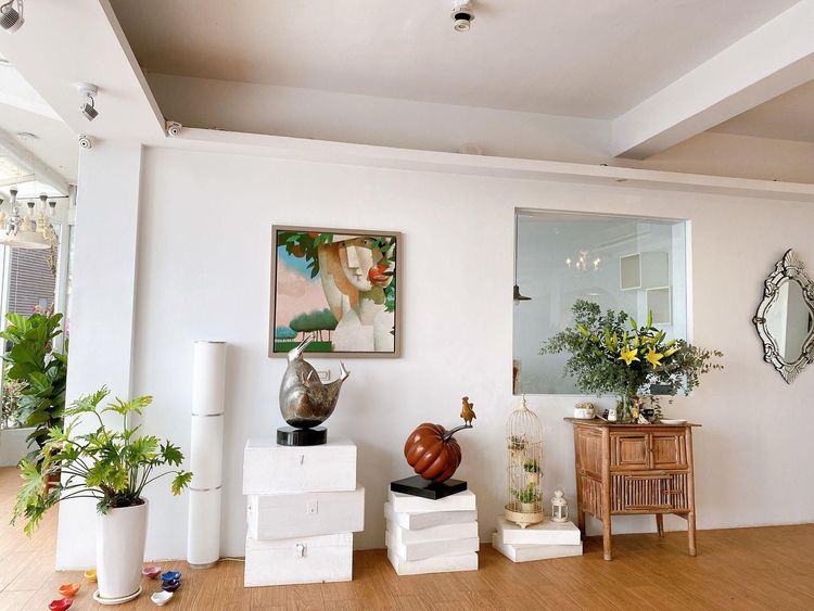 民宿的餐廳超級美!!以白色為基底再以許多植栽點綴,餐廳布滿了各種植物與鮮花,