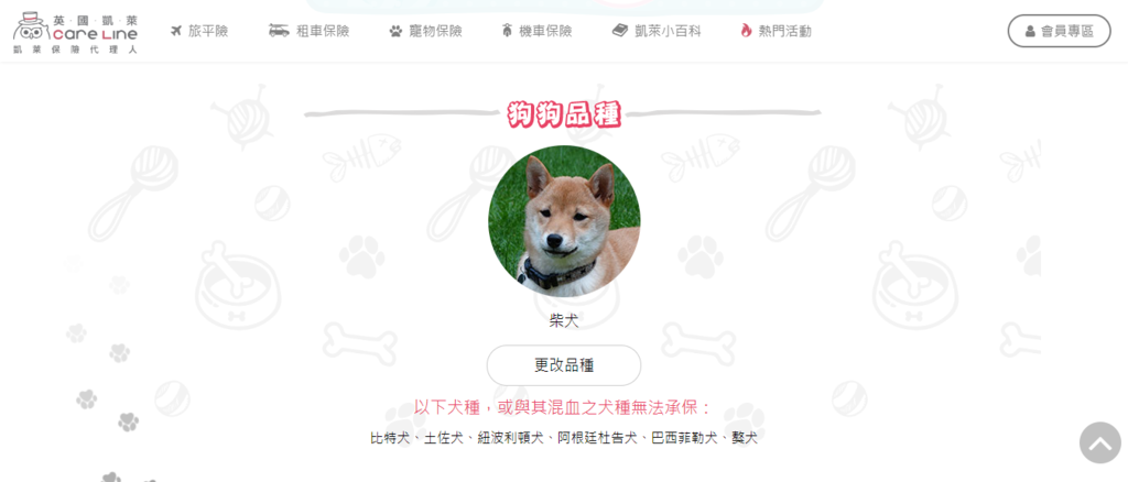 ➤狗狗品種為「危險性犬隻」及「與其混血之犬隻」無法承保