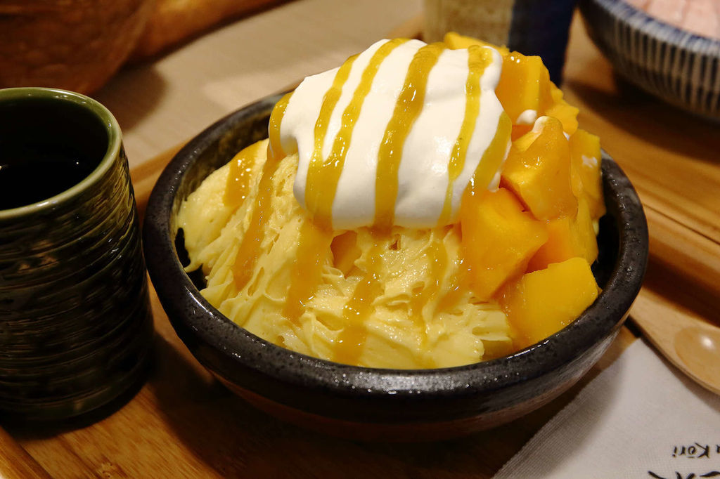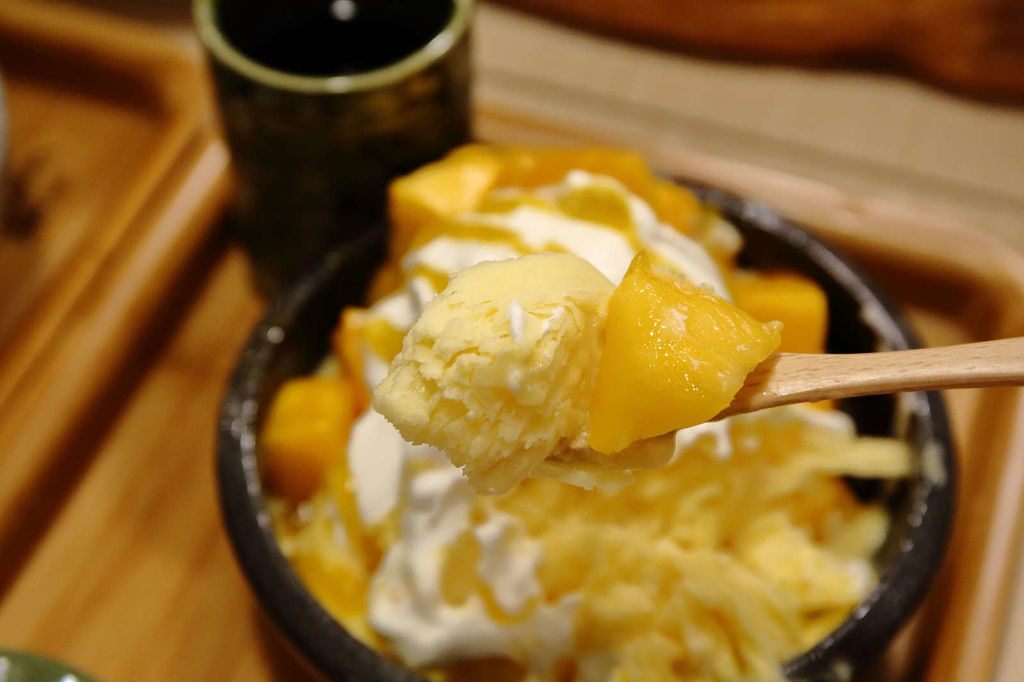底層是芒果雪花冰,每一口都吃的到富含芒果果泥並帶有愛文芒果香氣,冰涼消暑456熱