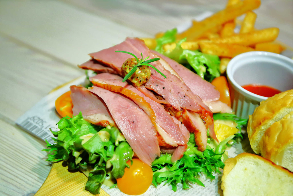 鴨肉溢出清甜肉汁,搭配著生菜一起吃感覺很清爽