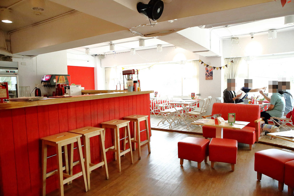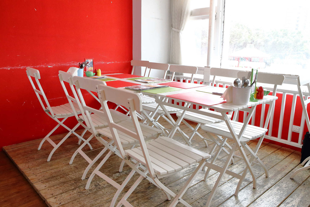 整間餐廳採光明亮,大膽的紅白色調,使用餐環境多了點活潑與流行時尚感