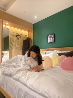 抵達飯店Check in時,飯店人員請我在沙發區Check in,並端來一杯氣泡飲,這是我第一次坐在沙發上喝著氣泡飲Check in,這個服務真的很貼心。入住前飯店人員會要求簽訂寵物公約,告知需要注意的地方,沒有太嚴苛的規定,主要是毛小孩可以上床,若是將床單、房間物品弄髒毀損,都需要賠償的唷!這部分毛主人們要多多注意!