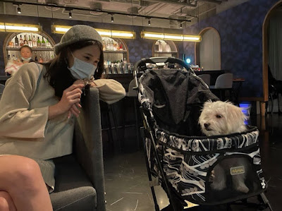 所有住客和寵物像自家客廳放鬆般聊天、互動,提供紅白酒、啤酒與一款小食。不喝酒的人,服務人員會幫製作無酒精特調或是氣泡飲。這個時間看到許多狗狗互動,讓人彷彿置身在寵物聯誼活動。在這裡嚕咪可以很自在的落地走走(牽繩),服務人員還會來跟嚕咪互動,飯店工作人員對寵物非常友善與熱情,在這入住的毛孩被當作是貴賓一般,讓我們有種賓至如歸的感受。