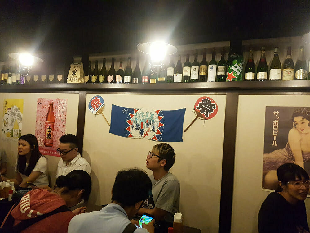 牆上放滿日本酒瓶和濃濃日本風的裝潢非常的吸晴