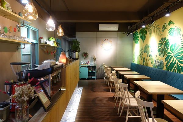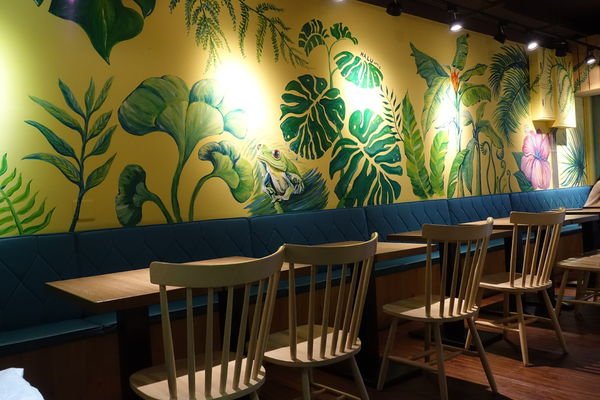 我真的太愛邑朵內外的塗鴉,詢問之下才知道,是因為闆娘本身就很愛花花草草??也很愛青蛙?所以店內外才會做這樣的塗鴉裝飾,而且仔細看會發現店內很多小陳設擺飾都是青蛙哦,超Q的而夢幻的彩繪樹、店內有如熱帶雨林般的大牆彩繪,是闆娘特別到韓國參訪當地早午餐店所得來的靈感哦??