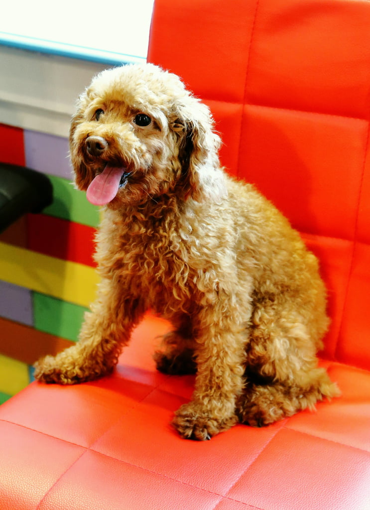 友人養的紅貴賓『阿法』,這小子已經嗨到不行,難得有餐廳可以任牠玩到欲霸不能