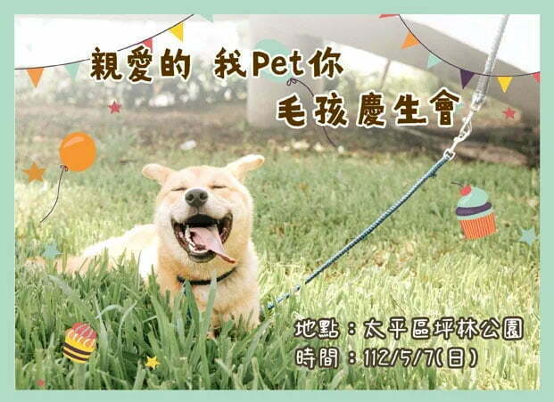 台中野餐 日今年擴大舉辦,5月7日將分別於山、海、屯、市4地同步登場;考量 毛小孩 也是一般家庭成員之一, 動保處 結合 野餐日 活動,在太平坪林森林公園舉辦「 親愛的我Pet你 」 毛孩慶生會 ,即日起至4月30日開放報名,限額100名,額滿為止。