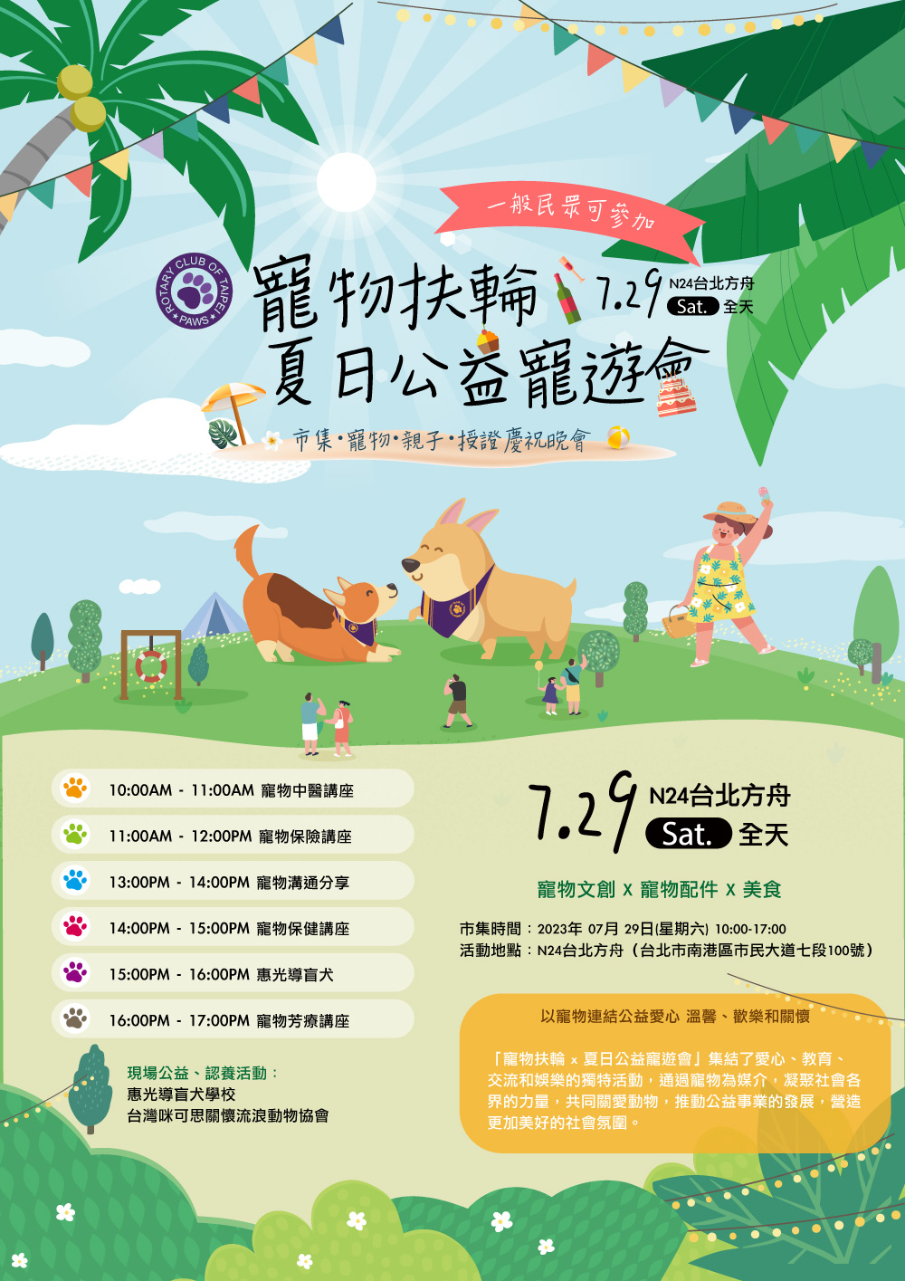 「寵物扶輪 x 夏日公益寵遊會」集結了愛心、教育、交流和娛樂的獨特活動,通過寵物為媒介,凝聚社會各界的力量,共同關愛動物,推動公益事業的發展,營造更加美好的社會氛圍。