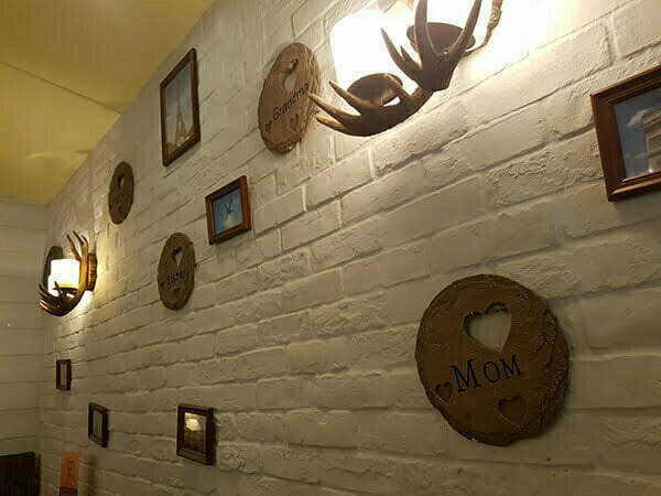 走上樓就被裝飾的熊熊火焰的壁爐給吸引了